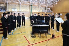 2限は3年生の中学校最後の授業でした。教科は音楽です。歌うことが大好きな3年生にぴったりの教科でしたね。卒業記念合唱曲をパートごとに最終確認し,音を合わせました。