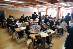 4限の卒業式予行演習が早く終わったので,3年生は3Aの教室に戻りました。そこにちょうどタイミング良く,卒業アルバムが業者から届きました。(予定では午後の配付でした。業者の皆様,本当にありがとうございます。)