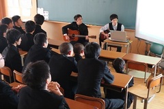 私は用があって聞くことができなかったのですが,放課後に卒業記念コンサートがあったようです。何と,Y.E先生とH.Tさんによるギターの生演奏でした。いつの間に練習していたのですか? 写真を撮ってくださった教育補助員のT.Y先生によると,それはそれは大変な盛り上がりだったようです。お二人ともお疲れ様でした。そして,見事な演奏に大拍手です。