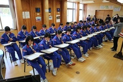 普段から訓練で心構えを身に付けることが大事ですね。未来の中学生の皆さん,困ったときはいつでも,先生の指示に従って清里中学校に逃げてきてください。
