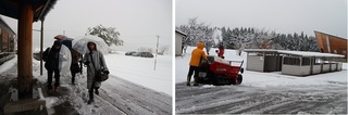 今日は,積雪であたり一面が真っ白な中での登校でした。長靴やブーツの出番がやってきました。コート,マフラーや手袋も必需品です。靴下の替えもあった方がいいですね。
