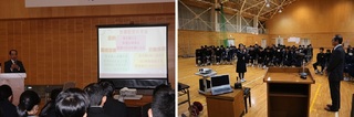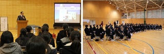 講演では,ご家族のお仕事,目的・達成目標・行動目標を明確にすることの意義,ご自身の好きな言葉など,多岐にわたってお話いただきました。特に進路決定の時期を間もなく迎える3年生には,示唆に富んだ内容でした。(クイズは少し難しかったですね。)