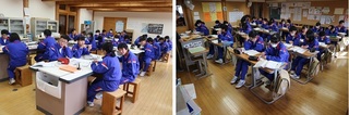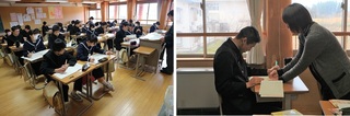 3年生は社会科で,実力テストの過去問に取り組みました。私が伺ったときはちょうど自己採点が始まったところでした。記述式の採点は難しいですね。先生に積極的に質問していました。