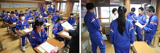 放課後に多目的室で,3年生のうち明日の私立高校入試に挑む20名に,前日指導がありました。受験票を一人一人に手渡し,日程,緊急時の連絡,受験会場までの送迎などについて確認を行いました。