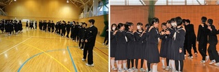 久しぶりに体育館に出て,「じゃんけん列車」を行いました。最後に全校生徒が1列になったところで終了です。一番先頭の人と,一番後ろの人が「今のお気持ちはいかがですか?」とインタビューに答えました。