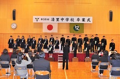 在校生代表の「卒業生を送る言葉」、卒業生代表の「別れの言葉」、それぞれ思いのこもった素晴らしいもので、聞く人の感動を誘いました。清中生らしく、素直な、心から出てきた言葉に、会場は何とも言えない空気に包まれました。聞く人みんなが胸打たれ、涙したことと思います。