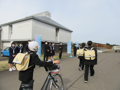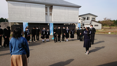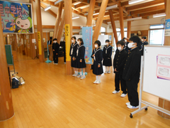 4月18日(月)~22日(金)に、第1回小中あいさつ運動が行われました。新型コロナウイルス感染症拡大防止のめた、中学校の玄関前でのみ行いました。全校生徒が1日ずつ分担しての実施で、初日の18日(月)の様子です。担当の12名の生徒が、爽やかなあいさつをしてくれました。