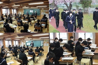 午前中の2・3年生の学活の様子です。(写真上段は2年生、下段は3年生) メンバーは変わりませんが、教室が違うと何か改まった気持ちになりませんか? 配られた教科書を真剣に見ている3年生。 早くも校庭でクラス写真を撮りに行った2年生。 みんなの笑顔が輝いているのが何よりの証拠です。清里中学校、希望溢れるスタートを切りました。よろしくお願いします。