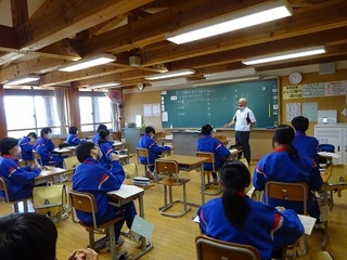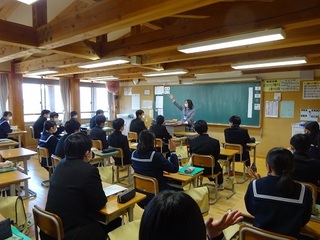 <授業開始> 2年生は社会、歴史分野は江戸幕府の成立でした。徳川幕府の将軍は15名。全部言える・・・という人もいたようですが、大きな改革や事件に絡めて覚えられるといいですね。 積極的に話ができる雰囲気、間違っても大丈夫と受け止める仲間がいると楽しくなりますね。