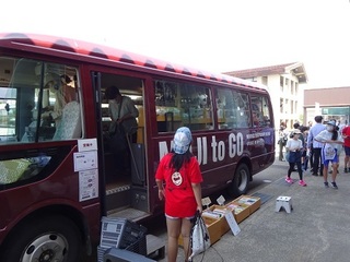 私も興味津々で行ってきました。「おせっかいカレー」のキッチンカーと「無印良品」のMUJIバスが会場に来ていました。