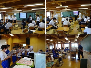 <授業風景> 3年:社会 プレゼンテーションが始まりました。明日の本番は、体育館ですので、声を大きめに話してくださいね。 3年:英語 アリス先生の授業では、イラストに描いてあるモチーフを探して関係代名詞を使って文を作っていきました。 2年:社会 雪が多い地方の冬の農家の収入を補うために、「出稼ぎ」が行われていたのですが・・・。今はどのくらいの方が出稼ぎに行かれているのでしょうか。 1年:音楽 男声パートが自信をつけてきました。期待してます。