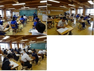<3年 上進連テスト> 3回目のテストが終了。手ごたえはどうでしたか?受験本番までにはまだ時間があるので、結果だけでなく、プロセス(学習の方法や生活習慣など)の改善につなげていきましょう。 <授業風景> 1、2年 社会 試験範囲がほぼ終わり、確認の意味でのプレテストを行っています。ワークやノートの見直し(インプット)から、問題を解いていく(アウトプット)への変換ですね。