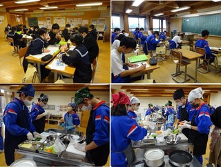 焼きそばと野菜のスープづくりです。午後の授業にもかかわらず、出来上がった2品はみるみる生徒のお腹の中へ。手際もよく、仕事分担も協力してできていました。さすがですね。