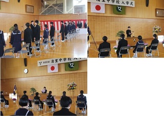 <入学式> 60回の節目を迎えた令和6年度の入学生。呼名の時の返事が素晴らしかったです。 新入生を迎えるための準備・片付けもあっという間に仕上げてしまう2・3年生。頼もしい限りです。 6日から春の交通安全週間が始まりました。自転車通学も再開となりました。登校時、下校時には交通安全に気を付けてください。