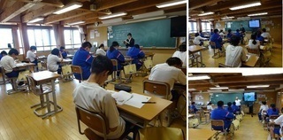 空の青さがまぶしい朝です。キラキラの太陽が見えました。<緑の羽根共同募金> 募金活動2日目は、玄関の外に立って行いました。あいさつも声が大きくなって、さわやかでした。 <心臓検診1年・血液検査2年> 他校からの受診者も来校して行われました。(タイミングがずれてしまって、清中の生徒が写っていません。)血液を運ぶ血管、血液を送り出す心臓、異常がないことがいいですが、早期の発見が肝心です。