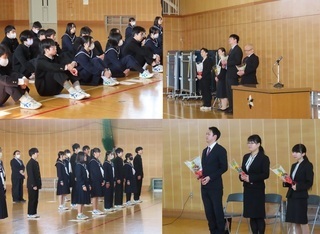 令和6年度末の転出職員は7名となりました。久しぶりに卒業生もそろった中で、離任式が行われました。年数は違えど、清里中学校で共に過ごすことができて、たくさんの喜びや出会いに恵まれて過ごすことができました。